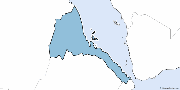 8:11:42 am Monday, October 20, 2025 Fullscreen Country: Eritrea Long Name: State of Eritrea Abbreviations: ER, ERI Capital: Asmara Time Zones: 1 Dial Code: +291 Time Zone in Eritrea 8:11 am Teseney EAT UTC +3 8:11 am Keren EAT UTC +3 8:11 am Nakfa EAT UTC +3 8:11 am Mendefera EAT UTC +3 8:11 am Asmara EAT UTC +3 8:11 am Assab EAT UTC +3 See all Time Zones in Eritrea See Holidays in Eritrea Create a Calendar for Eritrea Current Local Time in Locations in Eritrea with Links for More Information (7 Locations) Asmara Mon 8:11 am Keren Mon 8:11 am Teseney Mon 8:11 am Assab Mon 8:11 am Mendefera Mon 8:11 am Edd Mon 8:11 am Nakfa Mon 8:11 am Popup Window Fullscreen Exit Eritrea 8:11 42 am Monday, October 20, 2025 Need some help? Tools & Converters Meeting Planner for Asmara Time Zone Converter for Asmara Event Time Announcer for Asmara Time difference between Asmara and other locations Distance calculator to/from Asmara Display a free clock for Asmara on your website or blog Calendar & Holidays Create Eritrea calendar Upcoming Holidays Dec 21 - December Solstice Dec 25 - Christmas Day Jan 1 - New Year More Holidays in Eritrea Airports Asmara International Airport, ASM Massawa International Airport, MSW Assab International Airport, ASA NAKFA KEREN DAHLAK
