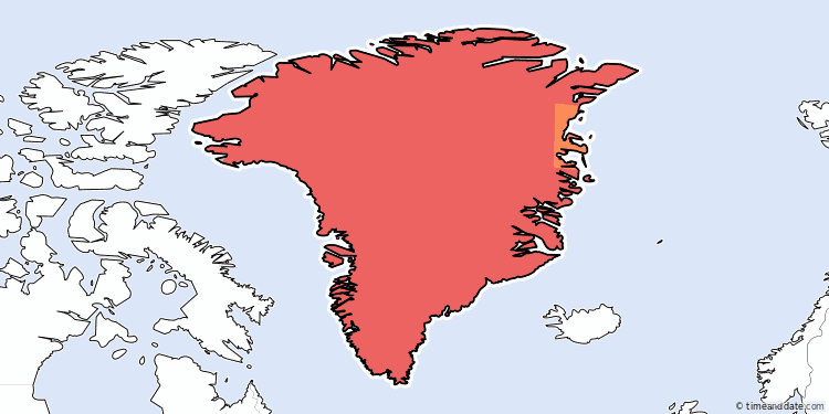 Ilulissat * | Mon 4:16 am | Pituffik * | Mon 2:16 am | Tasiilaq * | Mon 4:16 am |