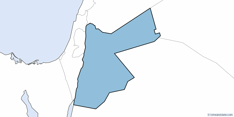 8:23:41 am Monday, October 20, 2025 Fullscreen Country: Jordan Long Name: Hashemite Kingdom of Jordan Abbreviations: JO, JOR Capital: Amman Time Zones: 1 Dial Code: +962 Time Zone in Jordan 8:23 am Ma'an EEST UTC +3 8:23 am Al Karak EEST UTC +3 8:23 am Madaba EEST UTC +3 8:23 am Irbid EEST UTC +3 8:23 am Amman EEST UTC +3 8:23 am Zarqa EEST UTC +3 See all Time Zones in Jordan See Holidays in Jordan Create a Calendar for Jordan Current Local Time in Locations in Jordan with Links for More Information (6 Locations) Al Karak Mon 8:23 am Irbid Mon 8:23 am Madaba Mon 8:23 am Amman Mon 8:23 am Ma'an Mon 8:23 am Zarqa Mon 8:23 am Popup Window Fullscreen Exit Jordan 8:23 41 am Monday, October 20, 2025 Need some help? Tools & Converters Meeting Planner for Amman Time Zone Converter for Amman Event Time Announcer for Amman Time difference between Amman and other locations Distance calculator to/from Amman Display a free clock for Amman on your website or blog Calendar & Holidays Create Jordan calendar Upcoming Holidays Dec 21 - December Solstice Dec 25 - Christmas Day Dec 26 - Boxing Day More Holidays in Jordan Airports Queen Alia International Airport, AMM King Hussein International Airport, AQJ Amman Civil Airport, ADJ Prince Hasan King Hussein, OMF RWEISHED (H4) AIR FIELD AND MET STATION