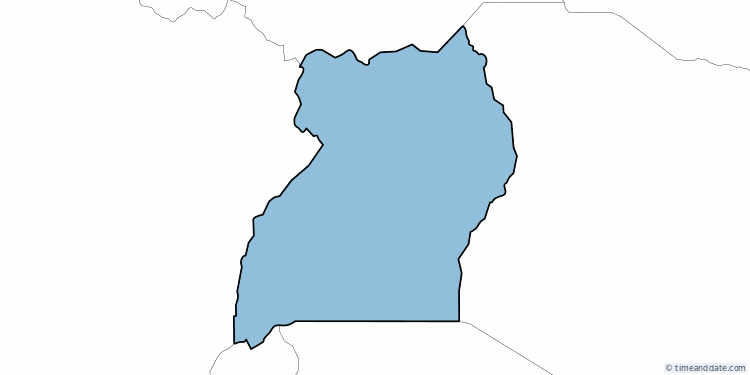 8:23:37 am Monday, October 20, 2025 Fullscreen Country: Uganda Long Name: Republic of Uganda Abbreviations: UG, UGA Capital: Kampala Time Zones: 1 Dial Code: +256 Time Zone in Uganda 8:23 am Mbarara EAT UTC +3 8:23 am Gulu EAT UTC +3 8:23 am Entebbe EAT UTC +3 8:23 am Kampala EAT UTC +3 8:23 am Lira EAT UTC +3 8:23 am Mbale EAT UTC +3 See all Time Zones in Uganda See Holidays in Uganda Create a Calendar for Uganda Current Local Time in Locations in Uganda with Links for More Information (7 Locations) Arua Mon 8:23 am Kampala Mon 8:23 am Mbarara Mon 8:23 am Entebbe Mon 8:23 am Lira Mon 8:23 am Gulu Mon 8:23 am Mbale Mon 8:23 am Popup Window Fullscreen Exit Uganda 8:23 37 am Monday, October 20, 2025 Need some help? Tools & Converters Meeting Planner for Kampala Time Zone Converter for Kampala Event Time Announcer for Kampala Time difference between Kampala and other locations Distance calculator to/from Kampala Display a free clock for Kampala on your website or blog Calendar & Holidays Create Uganda calendar Upcoming Holidays Dec 21 - December Solstice Dec 25 - Christmas Day Dec 26 - Boxing Day More Holidays in Uganda Airports Entebbe International Airport, EBB Arua Airport, RUA Gulu Airport, ULU Soroti Airport, SRT MWENGE MBARARA, MBQ